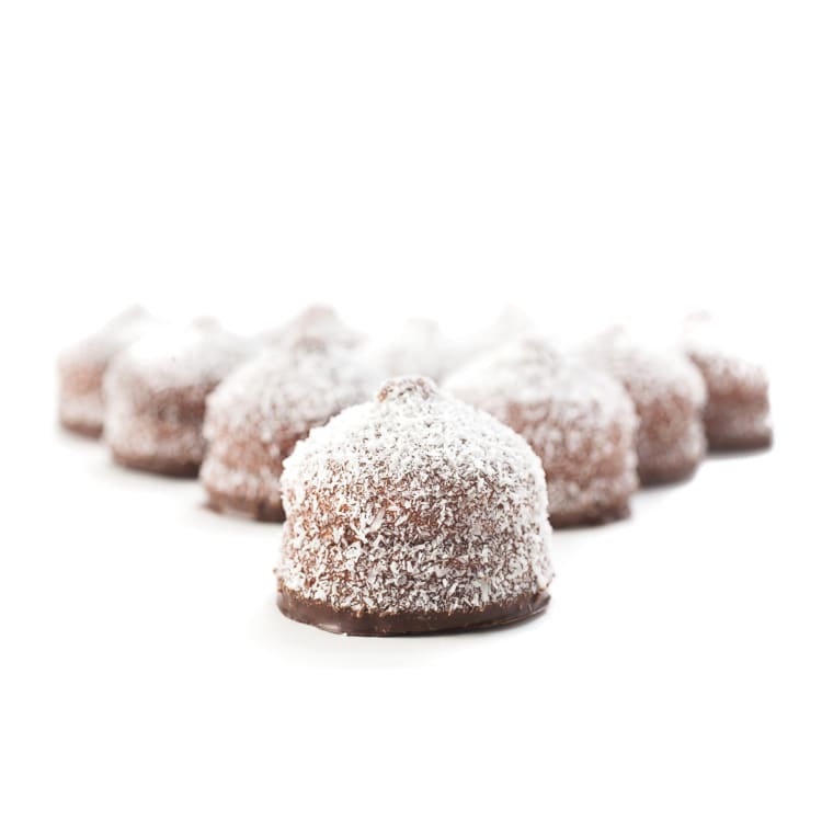 Ingredienser: Glykos, socker, vatten, vegetabiliskt fett(segregerad palmkärnolja), florsocker, fuktighetsbevarande medel(sorbitol), äggvita, kakaopulver, emulgeringsmedel(solroslecitin), stabiliseringsmedel(E 440)(E406), arom, kokos. Kan innehålla spår av mjölk. Förvaras torrt och svalt, frysbara.